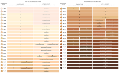 PP1 (R) - The cool, rosy tones of this shade work well to lift and brighten micro-shadows. PP2 (NG) - This is the best shade overall to camouflage any blemishes, acne scars, broken capillaries and pigmentation spots and to lift micro-shadows. |