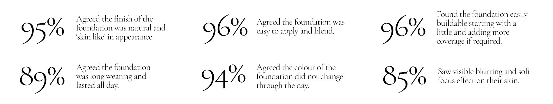 A soft-focus, seamless, skin-like finish in a lightweight and long-wearing, skin-friendly formula.